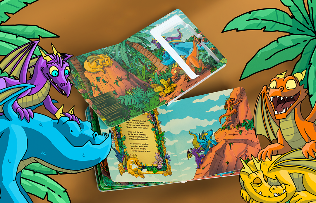The Storybook – A beautifully illustrated dragon adventure for your child. There are 26 colourful pages in this board book.